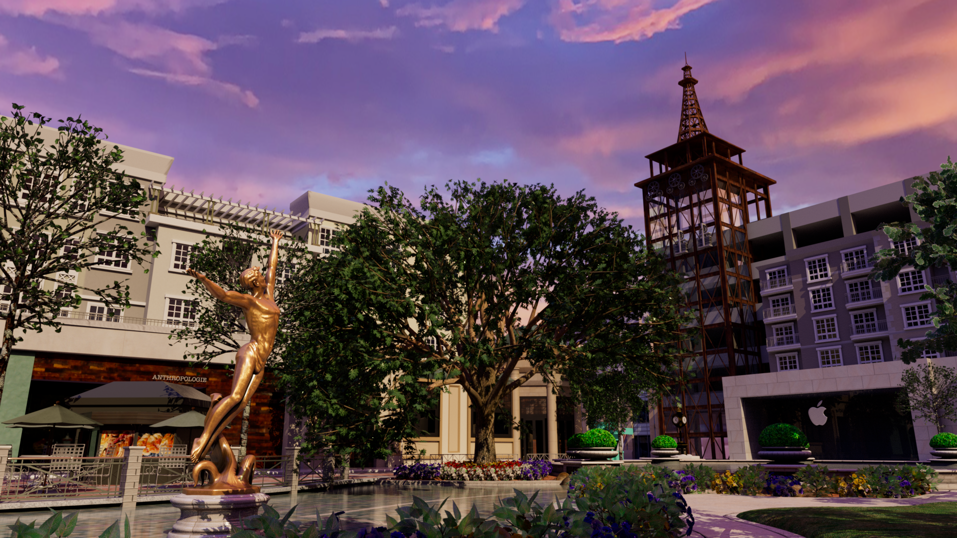 A 3D environment model of a real world shopping plaza in Glendale, California
